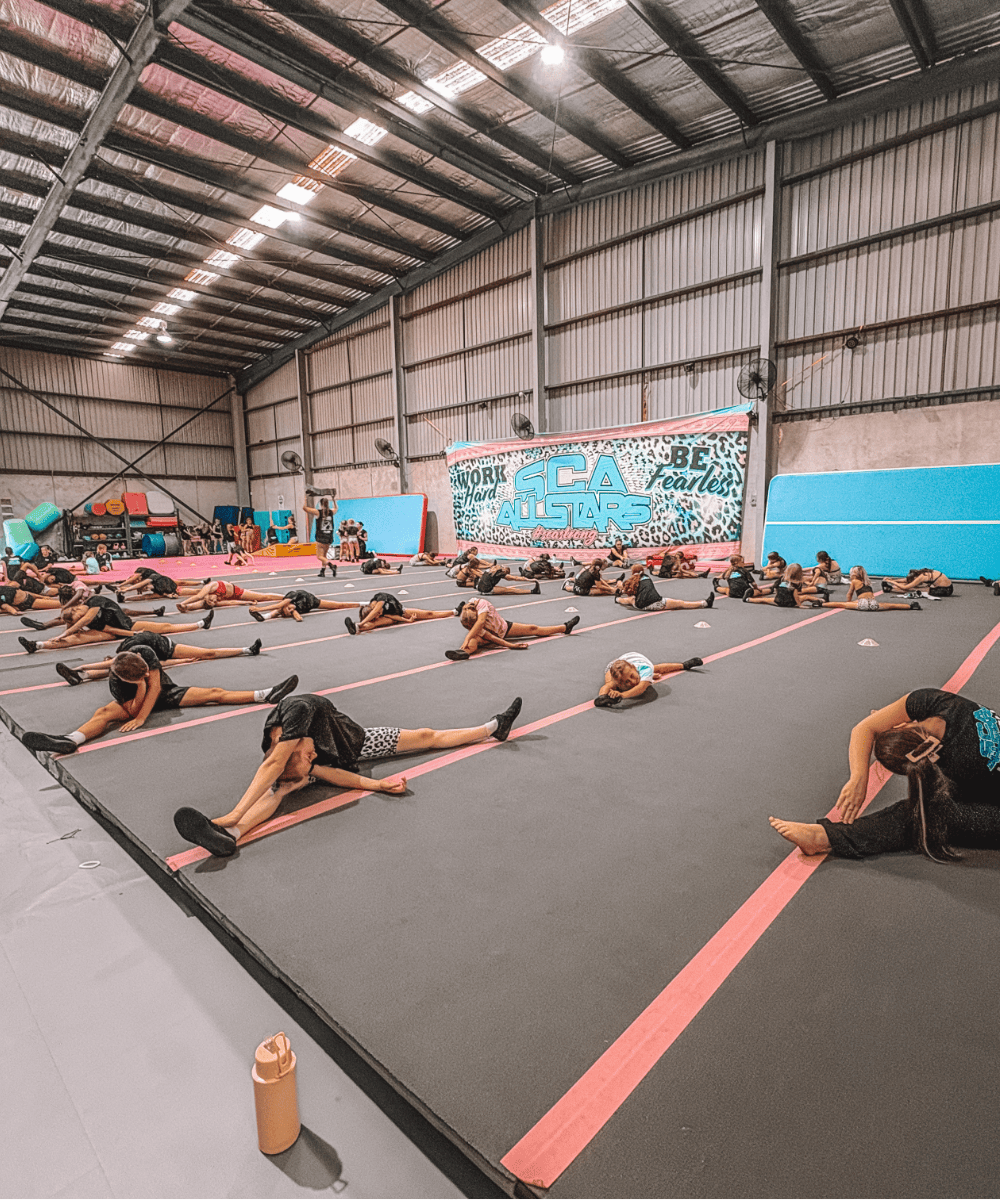 A fun-filled, active day filled with gymnastics tumble, cheer stunts, obstacle courses, games, and more!